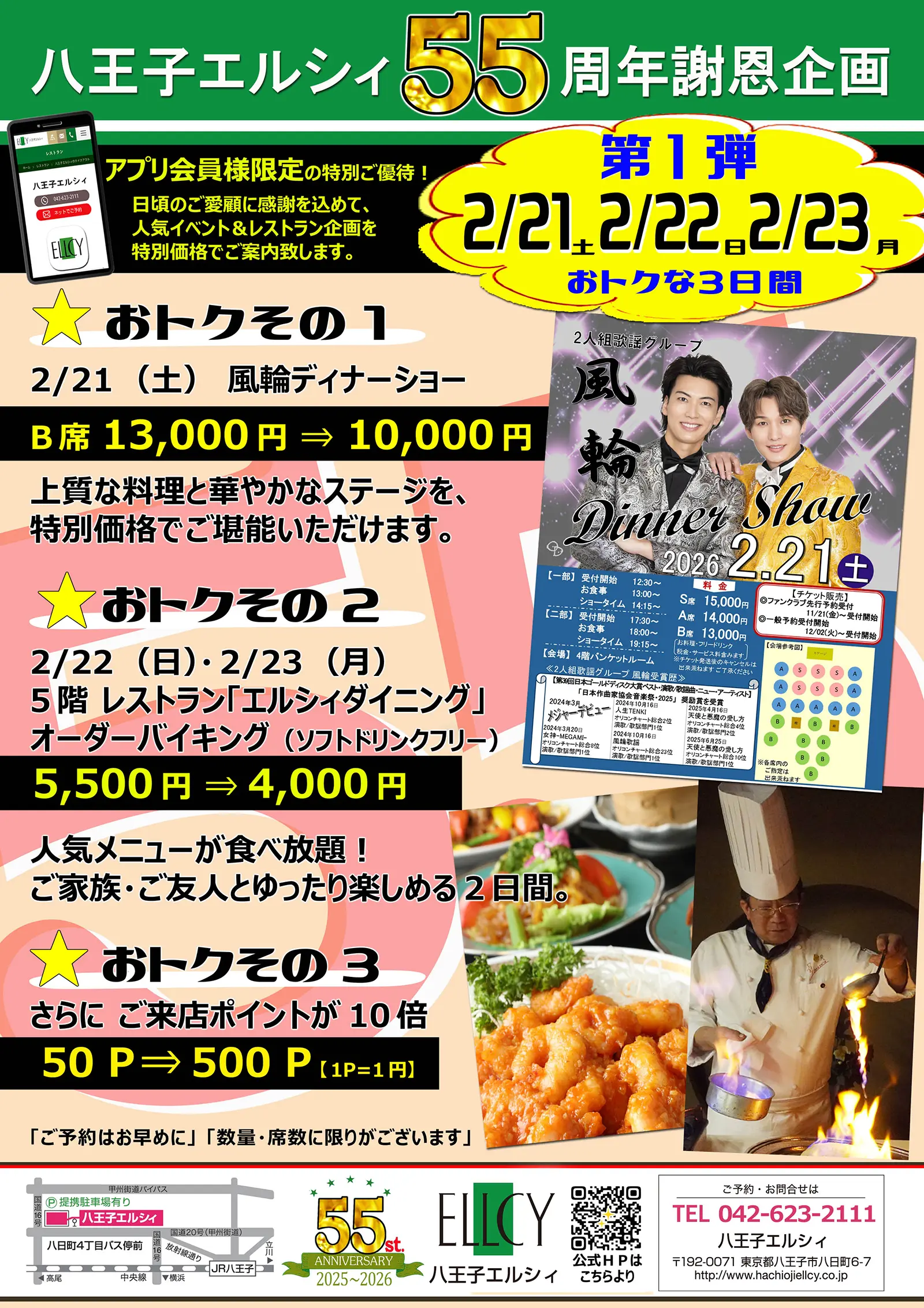 | おトクその1 | 2026年2月21日(土)開催の風輪ディナーショー【B席】 |